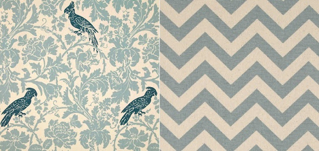 So, here are my fabric choices side by side. The birds on the left is what I used for the curtains, and the chevron I decided to use for the china cabinet backing. For my shelves I calculated that I needed 3 yards (about one yard for each shelf) which brought my total to $17.94 which I was extremely happy with! A word of advice is to always go ahead and order at least a 1/2 yard extra because it is better to have enough!